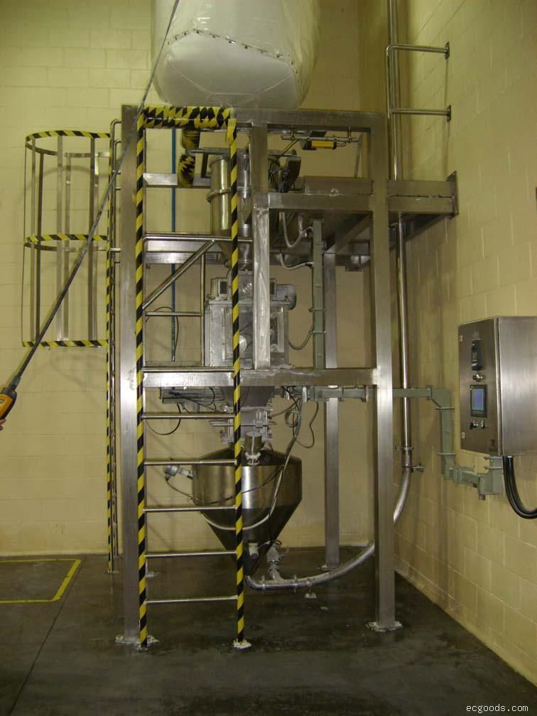 噸包拆包機(jī)卸載方式主要分為兩種:一種是大袋開袋后和大袋卸料站叉車將大袋(或噸袋)吊裝到卸料機(jī)的機(jī)架上,它本身不帶起重設(shè)備,二是大袋開袋站和大袋卸料站是靠自身的起重設(shè)備將大袋(或噸袋)吊裝到卸料機(jī)的機(jī)架上,不需要外界的幫助,它通過提升噸袋至設(shè)備進(jìn)料口,人工拆開噸袋下料口,打開流量閥并附以拍打、振動、破碎等裝置,促使袋內(nèi)的粉粒狀物料靠重力落進(jìn)料倉來完成拆包卸料工作,整個(gè)過程是全自動控制,系統(tǒng)操作穩(wěn)定,能完成連續(xù)拆包的任務(wù),操作過程簡單方便,通過相關(guān)實(shí)驗(yàn)結(jié)果可知,拆完一包料的時(shí)間大約是5-6分鐘,領(lǐng)先于國內(nèi)大多機(jī)械設(shè)備生產(chǎn)公司。